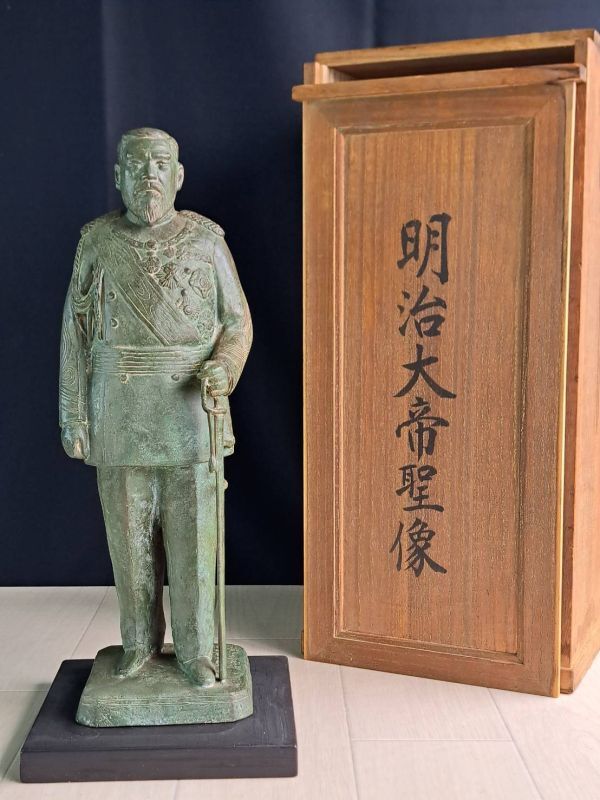- 小金丸幾久謹作 銅製 明治大帝聖像 41㎝ 共箱 1967年 明治百年記念 謹書賀陽恒憲