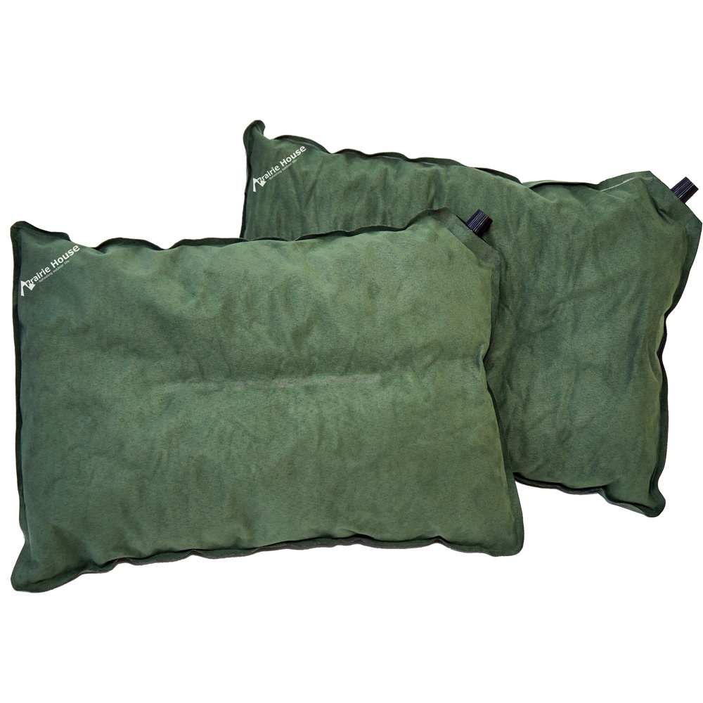 - Prairie House 2個セット セーム生地エアー枕 エアーまくら セーム皮風 ピロー クッション 車中泊 車旅 防災 オリーブグリーンPHS127G