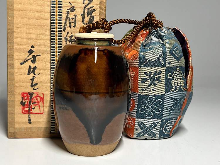 - 【瑞】福森守比古 阿槽焼 肩衝撃 茶入 仕覆付き 共箱