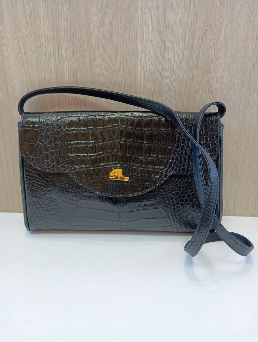 - 【中古品】クロコダイル ショルダーバッグ 黒ブラック 肩掛け バッグかばん 現状品