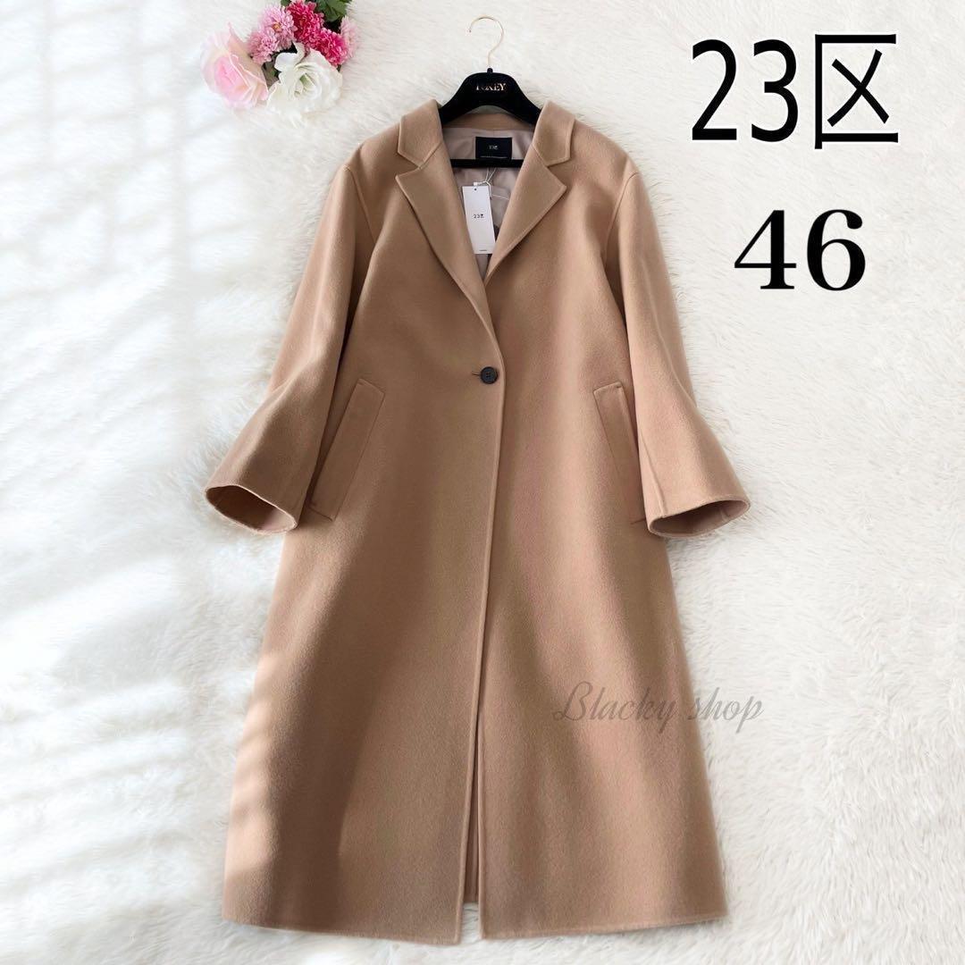 - 23区 ウール リバー ロング コート タグ付き 未使用 キャメル 46 大きいサイズ アウター チェスター コート