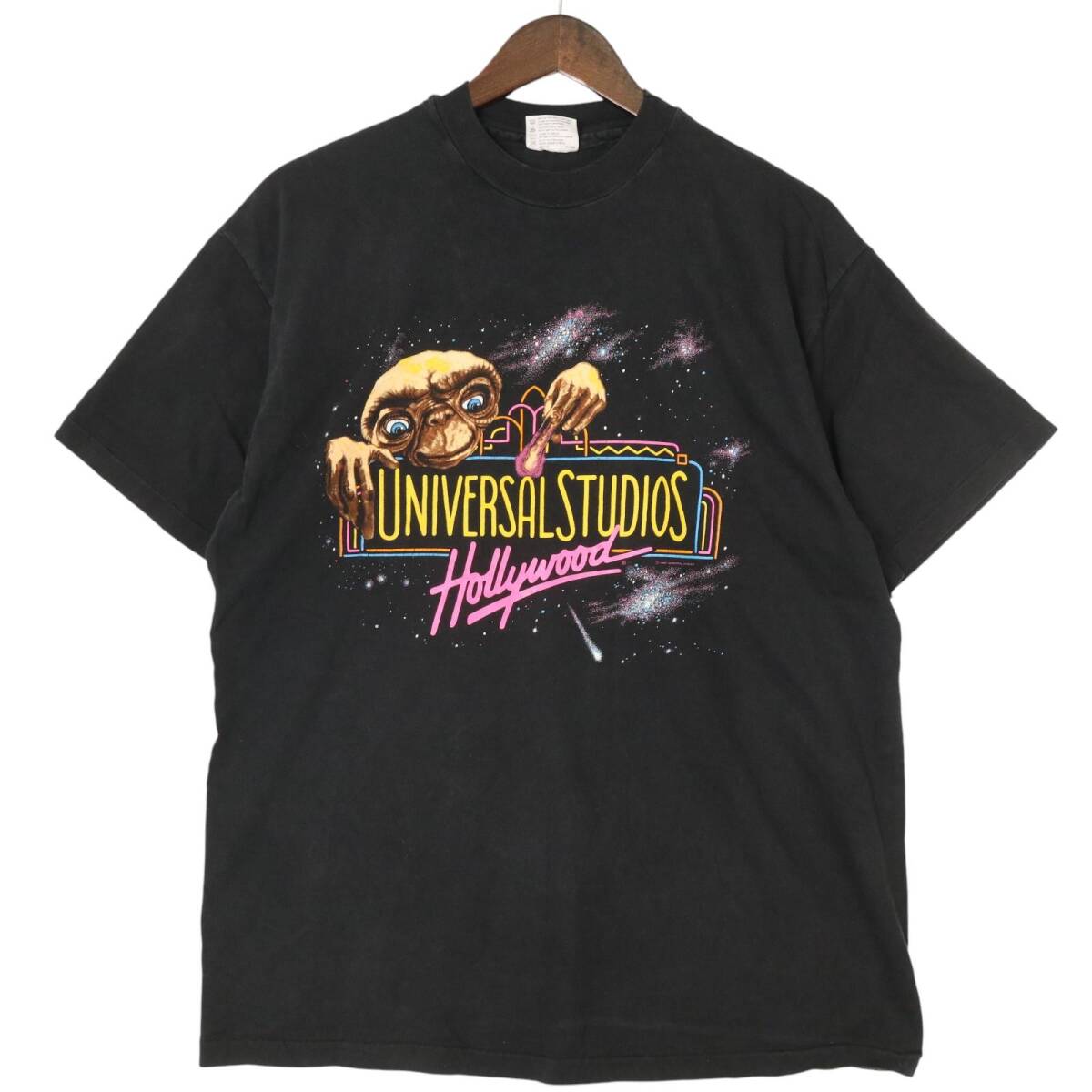 - 80年代 USA製 Hanes ヘインズ ユニバーサル・スタジオ UNIVERSAL STUDIO E.T. 半袖Tシャツ ブラック(メンズ LARGE)中古 古着 A5090