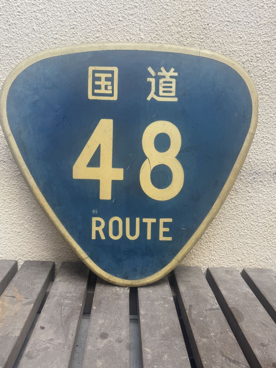 - 昭和時代 本物「 国道 48 ROUTE 道路標識 」雑貨 当時物 貴重 看板 インテリア アンティーク 昭和レトロ 宮城県仙台市 希少