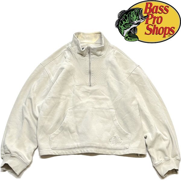 > 1点物◆バスプロショップBASS短丈ハーフジップスウェット古着レディースLメンズOKアメカジ90sストリートスポーツ中古ハイネック釣り362112