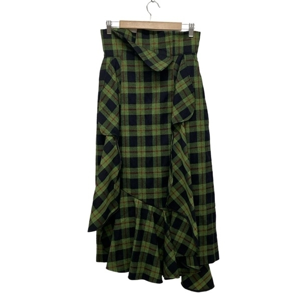 > エンフォルド ENFOLD ロングスカート サイズ38 M 300BA331-2870 - グリーン×黒×レッド レディース チェック柄/フリル/変形デザイン