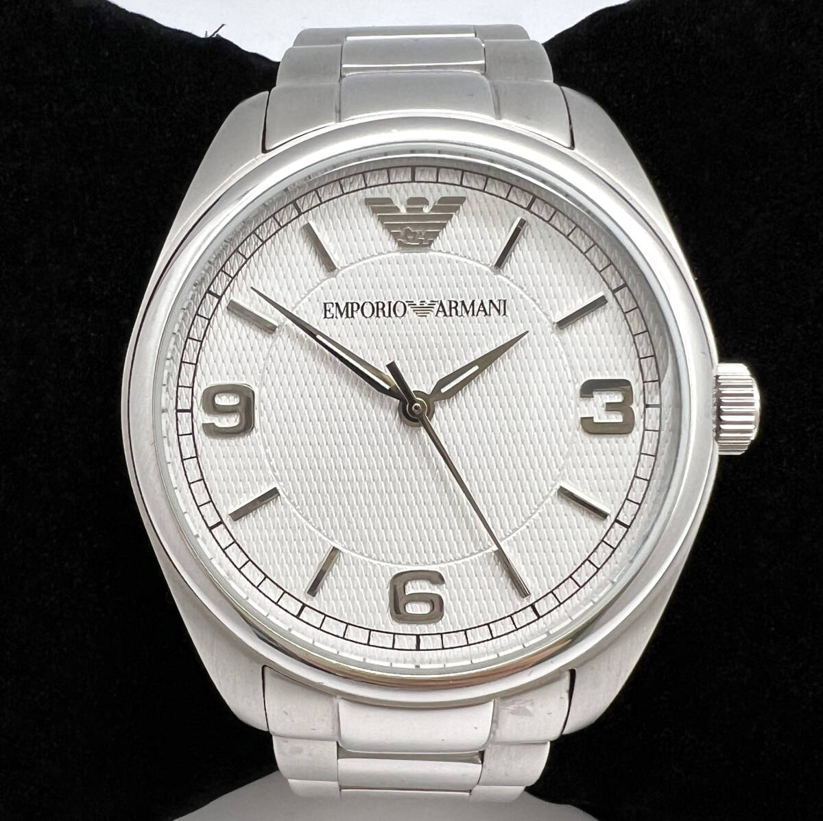 > 【稼働 新品電池】EMPORIO ARMANI エンポリオ アルマーニ AR-0316 クォーツ 3針 シルバー文字盤 SS ベルト純正 メンズ腕時計 美品