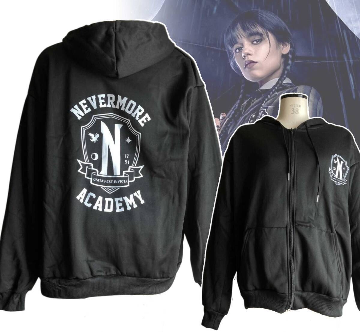 - ★送料無料★「ネヴァーモア学園 ウェンズデー/アダムス・ファミリー パーカー フード付き Mサイズ」tface-g 【タグ:映画】1