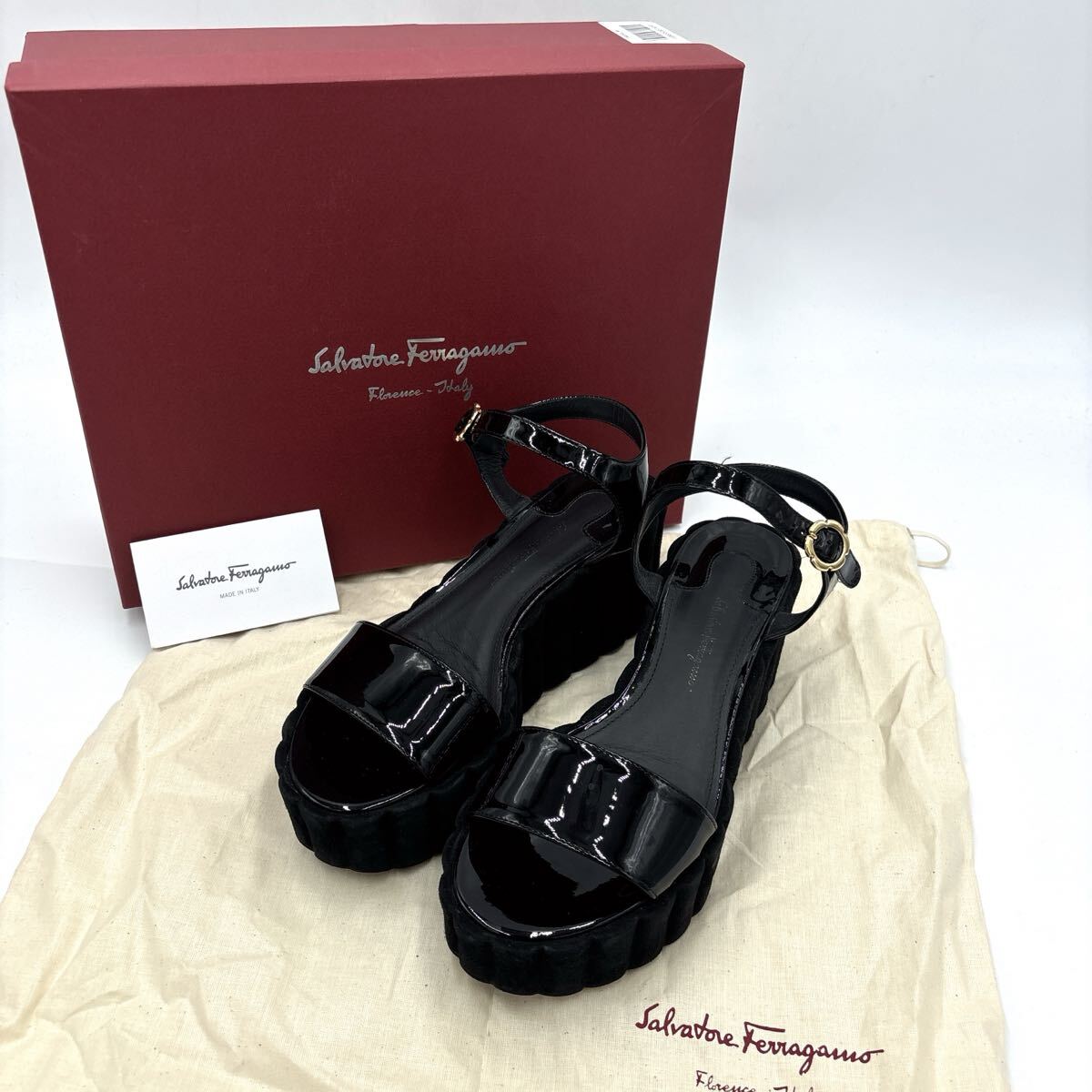 > * 付属品完備 '高級婦人靴' Salvatore Ferragamo サルヴァトーレフェラガモ 本革 プラットフォーム 厚底 ヒール サンダル 6.5C 23.5cm