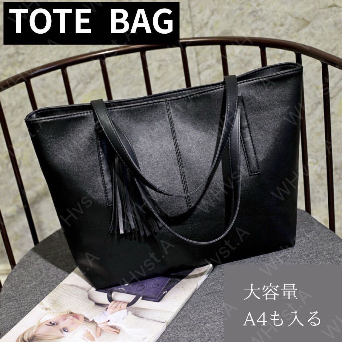 - トートバッグ 黒 ブラック 通勤 ハンドバック A4 シンプル 男女兼用 大容量 合皮 ビジネス