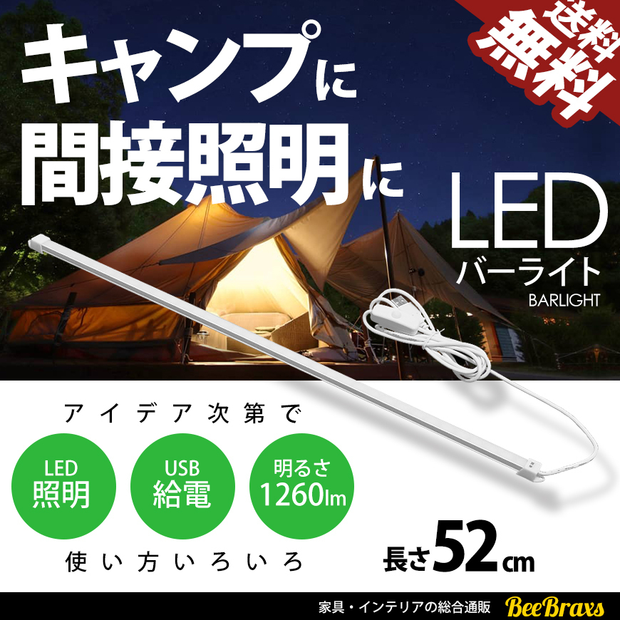 - LED バーライト USBランプ LEDライトバー 52cm 明るい キャンプ アウトドア 車中泊 間接照明 デスクランプにも 定形外 送料無料