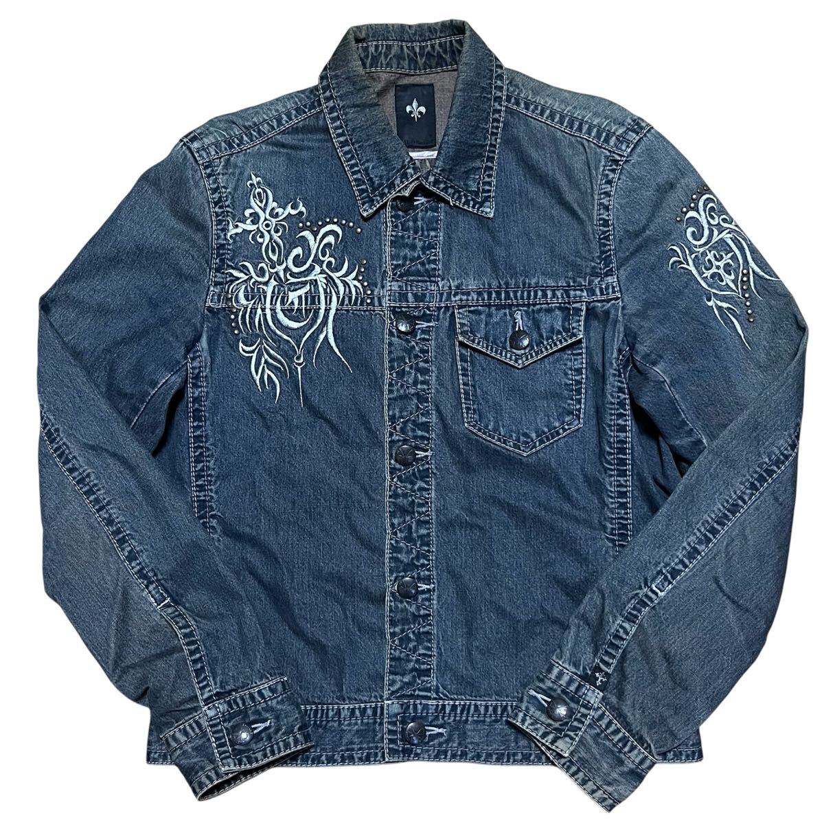 - カスタムカルチャー スタッズ 刺繍 デニムジャケット 00s 値引可 Y2K 蜘蛛ボタン CUSTOM CULTURE ビンテージ加工 フェード加工 当時物