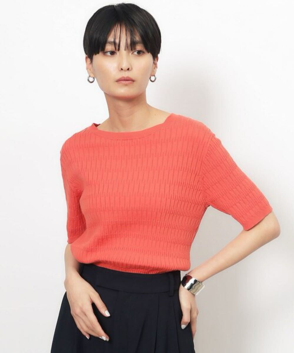 - OPAQUE.CLIP オレンジ ニット 柄編み5分袖ニット サイズL オペークドットクリップ