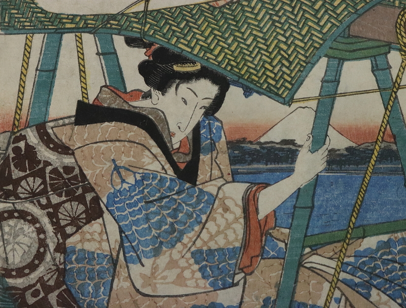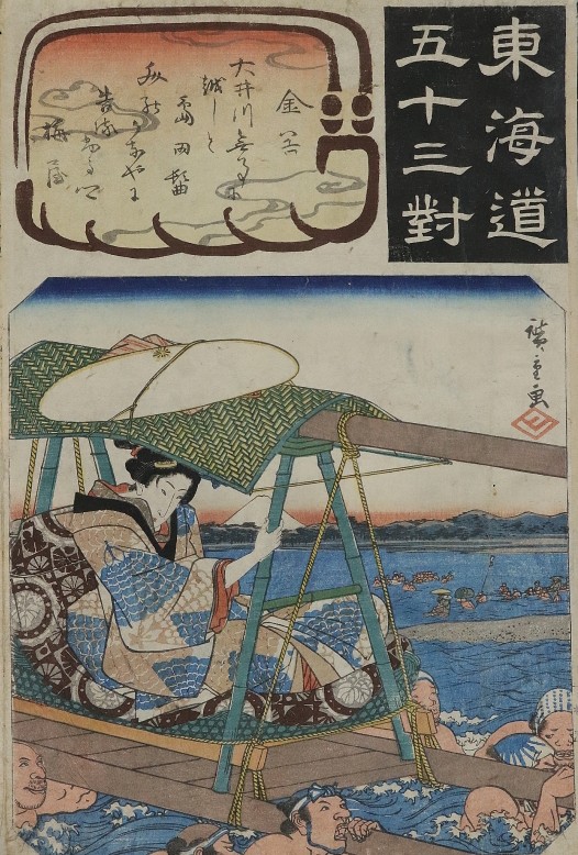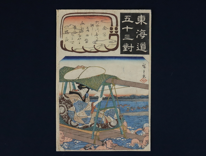 - 11028■【真作】初代歌川広重 「東海道五十三対 金谷」 木版 浮世絵 江戸時代 藤広重 マクリ