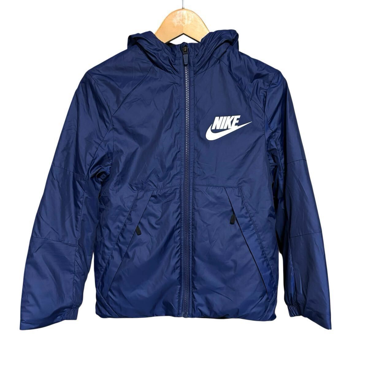 > ※I NIKE ナイキ フード付きナイロンジャケット ネイビー 裏起毛 ポリエステル サイズS キッズ 130-140