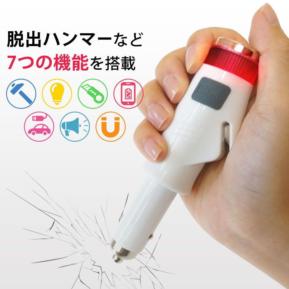 - 期間限定セール★レスキューハンマー シートベルトカッター 緊急ライト 緊急サイレン 1台7役 エマージェンシーライト LEDライト XAA375