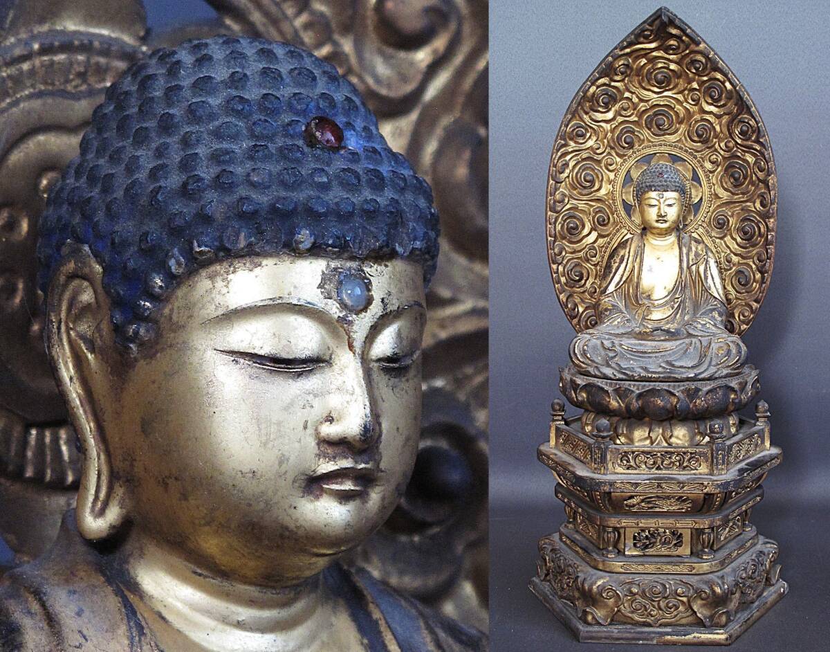 - 【趣】優品!! 玉眼 『木造釈迦如来座像』 室町~江戸期 古作/#仏教美術#仏像#仏画#本尊#古仏#坐像#仏具#木彫#骨董#古美術