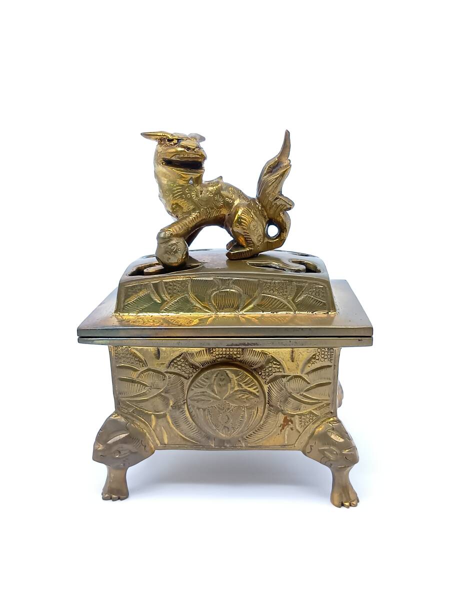 - 【OK彦】香炉 獅子 四角獅子香炉 ゴールド 金 アンティーク 1円スタート