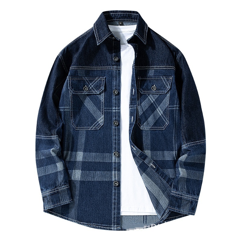 > チェックシャツ シャツジャケット デニムシャツ 長袖シャツ メンズ・新品 ヴィンテージ 春秋 トップス【1921-222】ブルー M