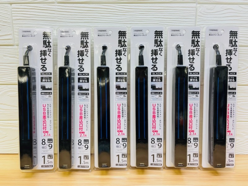 - A850 YAZAWA 6本set スマホの充電コードが直接挿せる 急速充電2.1A USB 1ポート付 差込口フリータップ ブラック 8~9個口 1.5m H6LS110151