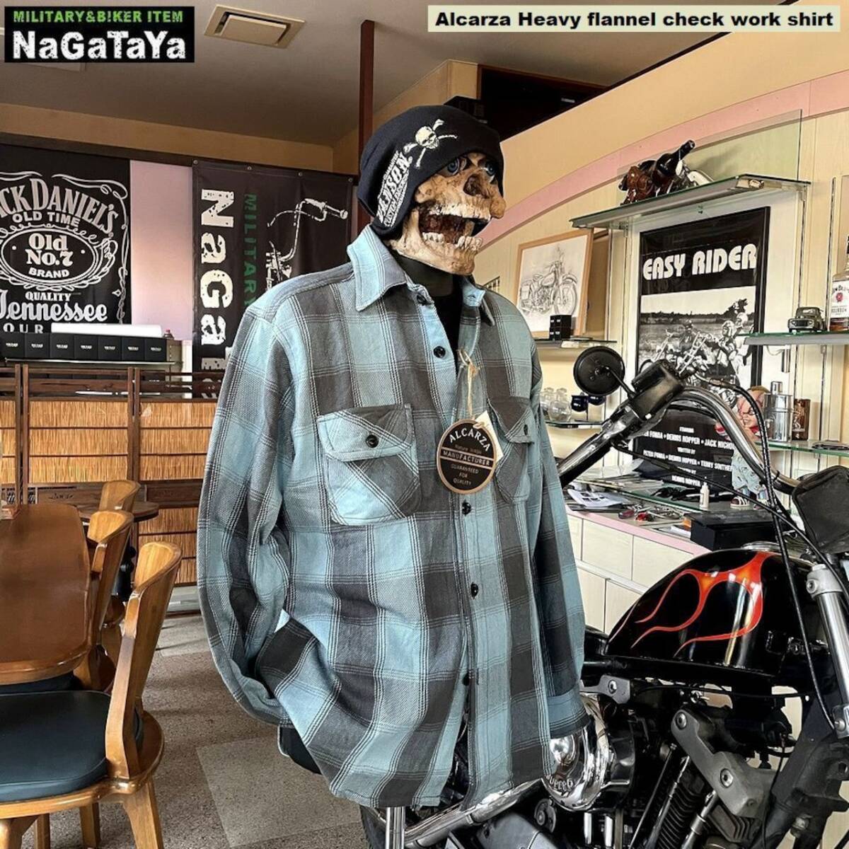 > ALCARZA アルカーザ ヘビーネルチェック ワークシャツ オンブレチェック柄 ブルー XLsize アメカジ バイカー アウトドア ネルシャツ