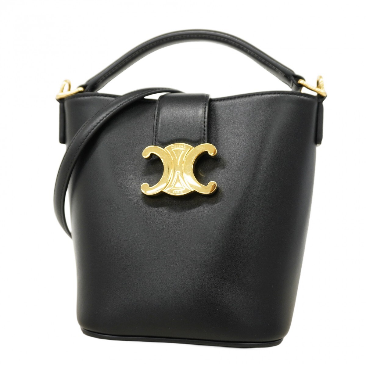 > ★SALE【5id4465】セリーヌ ショルダーバッグ ルイーズ トリオンフ レザー ブラック ゴールド金具【中古】レディース