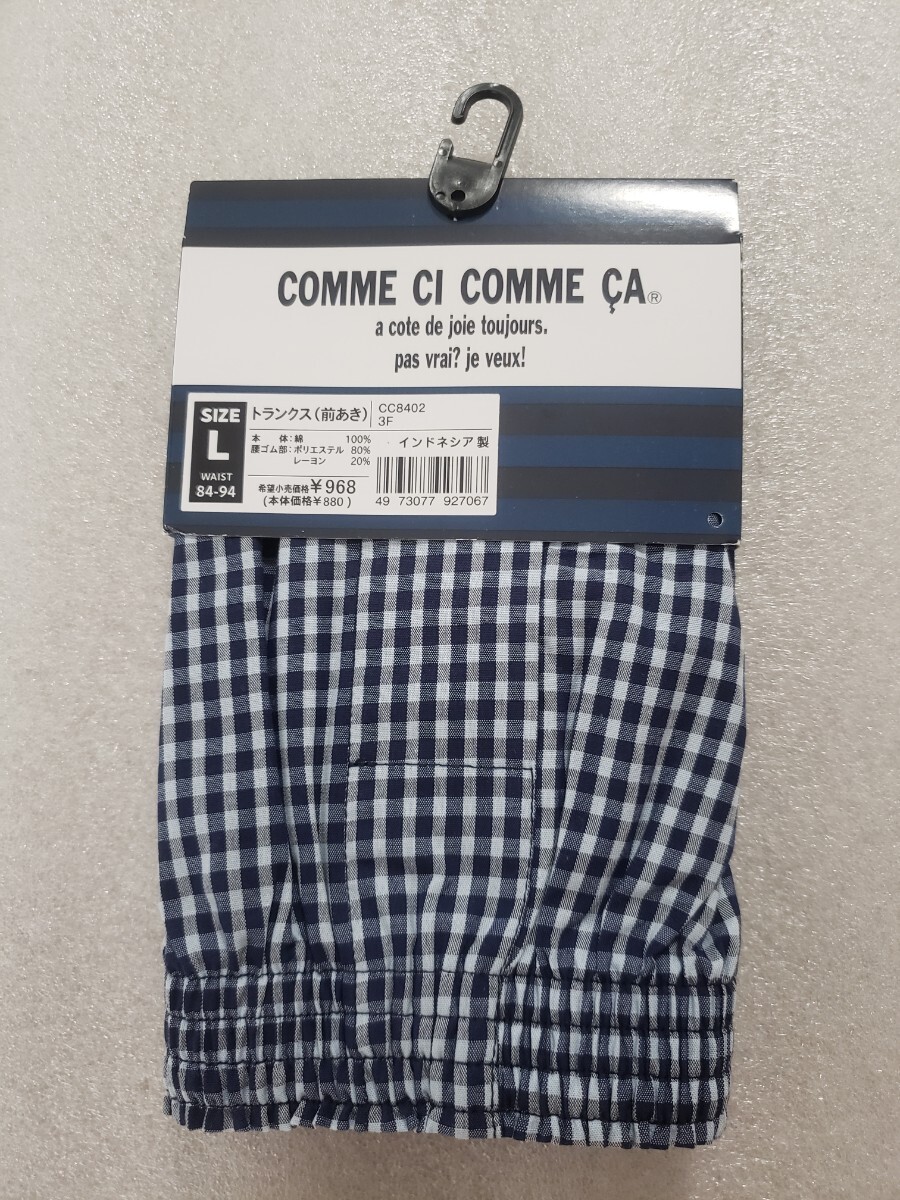 - Lサイズ 新品 未使用 コムシコムサ トランクス 前開き COMME CI COMME CA GUNZE グンゼ 本体綿100 ギンガムチェック ネイビー 薄ブルー