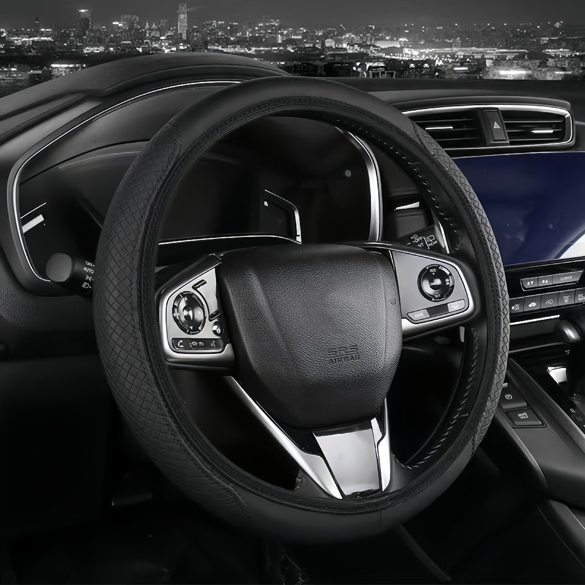 - ハンドルカバー ステアリングカバー キルティング 37~38cm カーボン調 車用 汎用 ステッチ 耐摩耗 滑り止め O型 D型