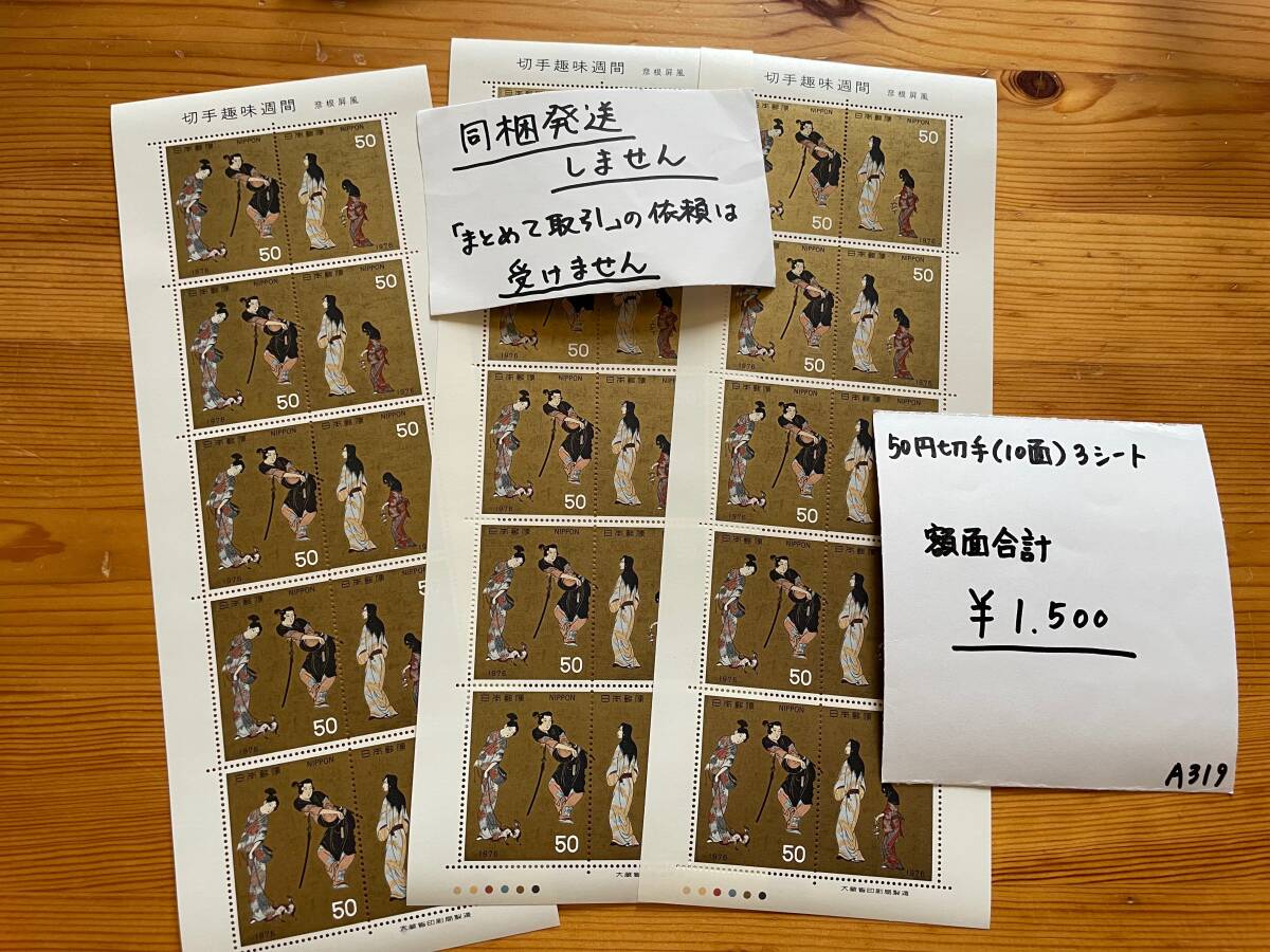 - ◆◆A319◆◆【切手】※同梱不可 額面合計1500円 50円切手(10面)3シート 切手まとめ売り