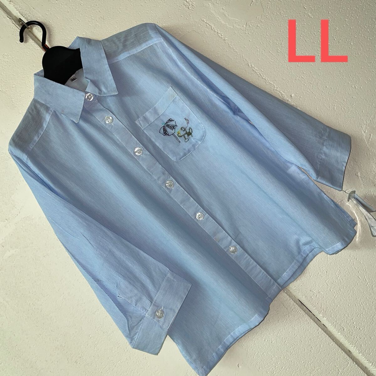 - 訳ありLLサイズ綿100%胸ポケット刺繍七分袖シャツブラウス