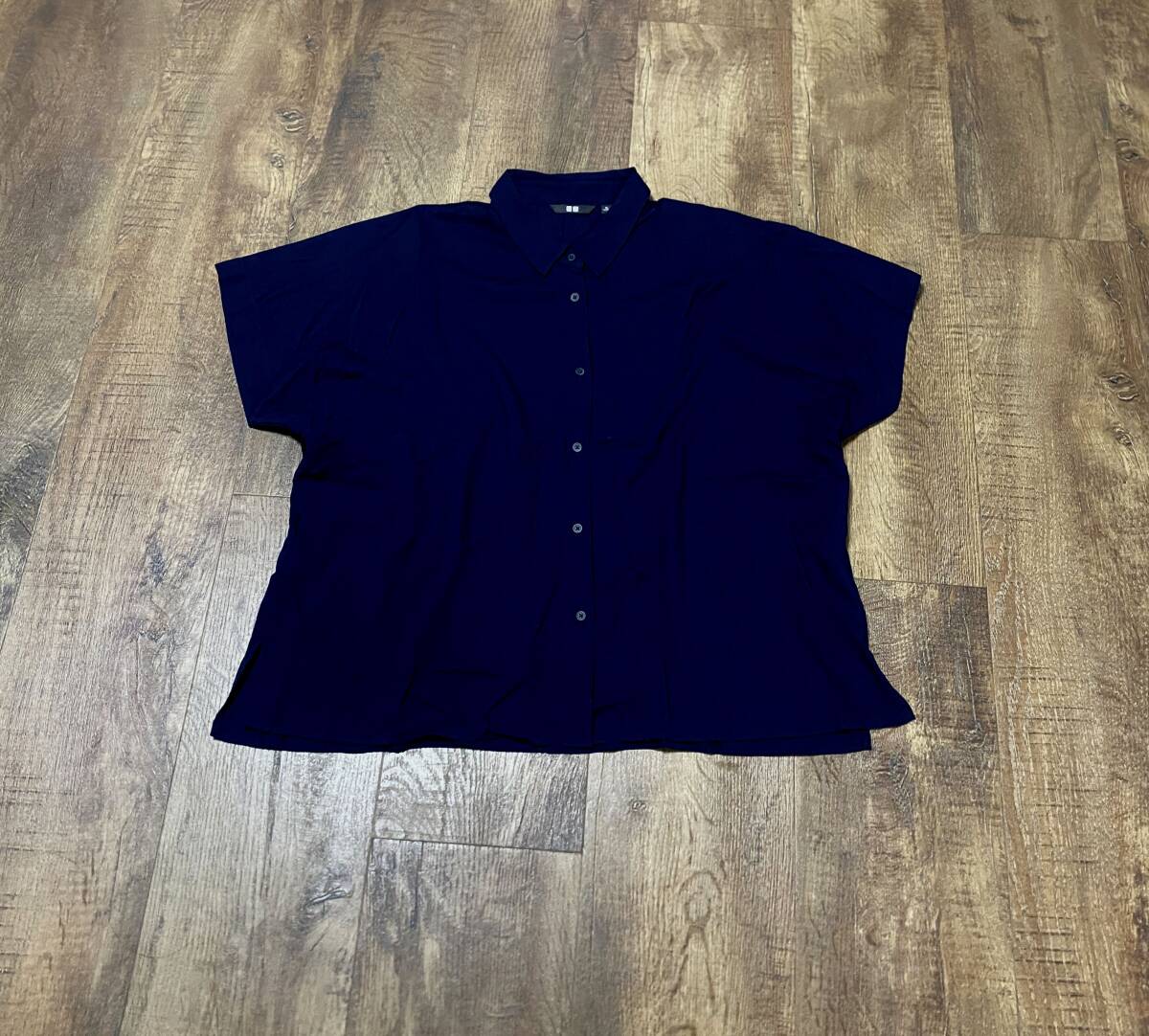 - 福祉バザー ユニクロ★半袖ゆるシャツカットソー紺/XL