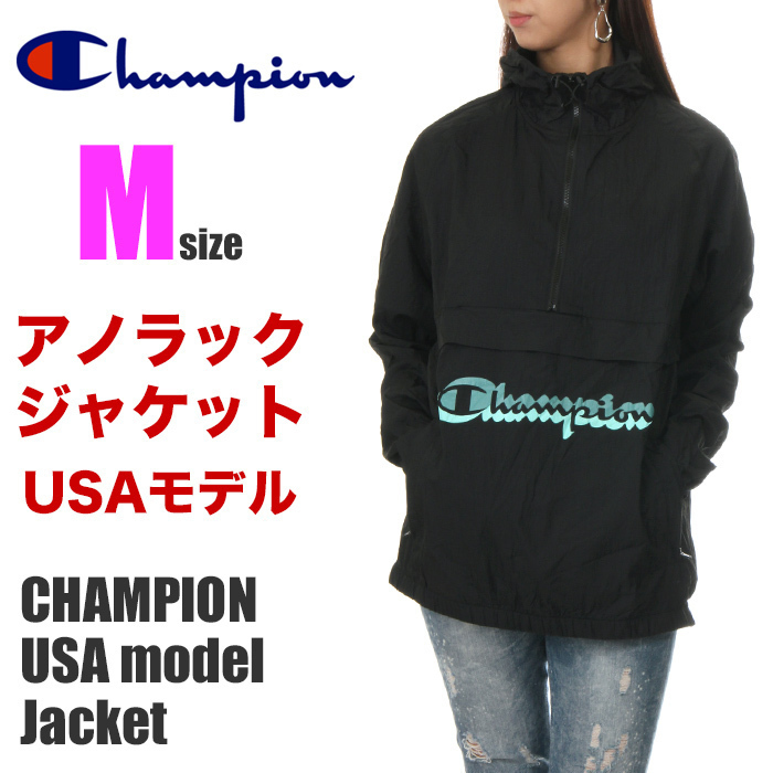 > 【新品】【USAモデル】チャンピオン アノラックジャケット M レディース 黒 CHAMPION ジャケット ナイロンジャケット 大きいサイズ