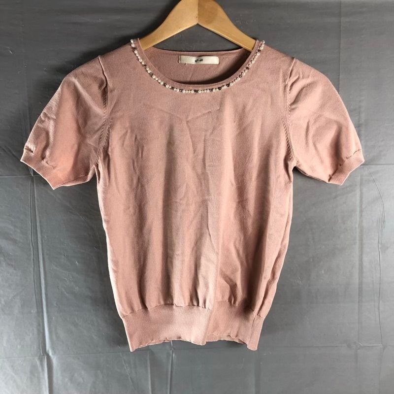 > エフデ ef-de カットソー 襟元装飾 ビーズ ビジュ― 半袖 クルーネック 薄手 ピンク系 9サイズ 2025090400446