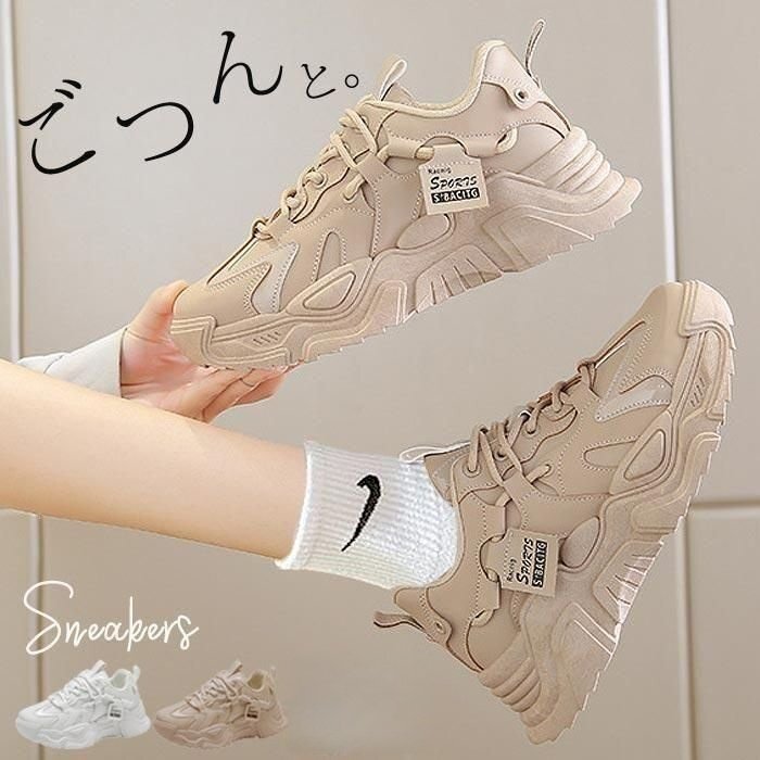 > ダッドスニーカー 厚底スニーカー レディース 大きいサイズ ローカット 歩きやすい カジュアル コンフォートシューズ 通学 ベージュ37