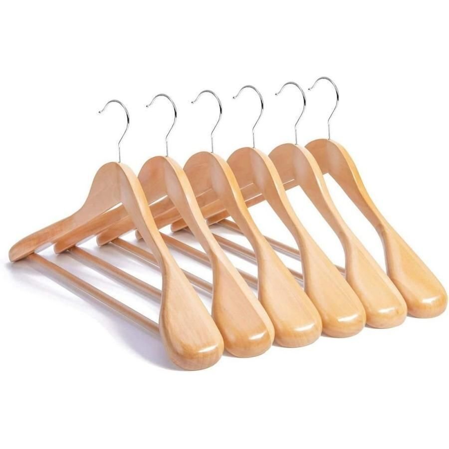 - ハンガー 木製ハンガー 6本セット 衣類ハンガー 洋服ハンガー メンズ レディース ズボンバーが付いた衣類ハンガー 型崩れ防止 ナチュラル