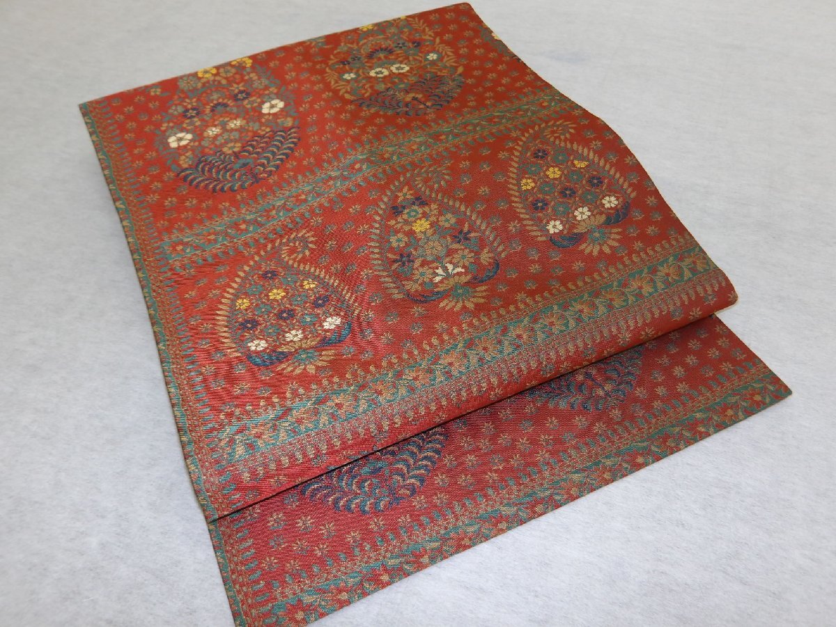 > 〔楽布特選〕P40551 「萬葉」製 紹巴 名古屋帯 未使用仕立上がり品 t
