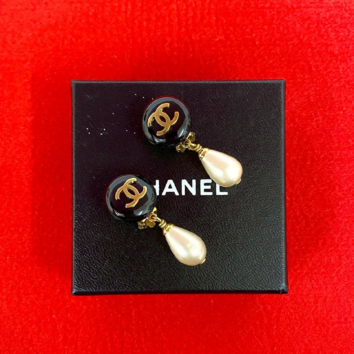 - 極 美品 箱付 コメあり 95P CHANEL シャネル ココマーク フェイクパール イヤリング アクセサリー ブラック ホワイト ゴールド 266-3