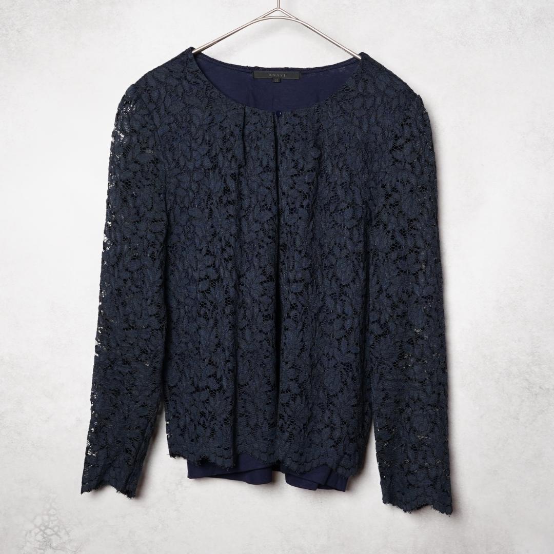 - ANAYI トップス ネイビー #38 レース シースルー