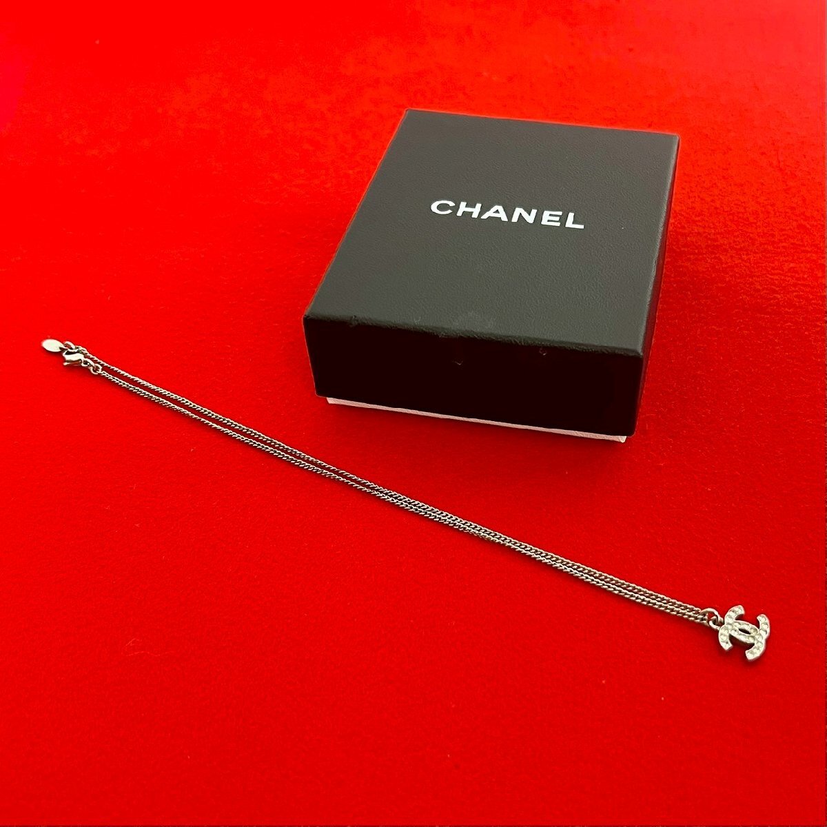 - 極 美品 箱付き コメあり C12V CHANEL シャネル ココマーク ラインストーン メタル ネックレス ペンダント チョーカー シルバー 11306