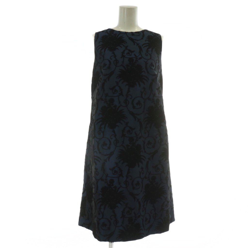 - モスキーノ MOSCHINO ワンピース ノースリーブ ひざ丈 ベロア 花柄 総柄 リボン 42 M 紺 ネイビー 黒 ブラック
