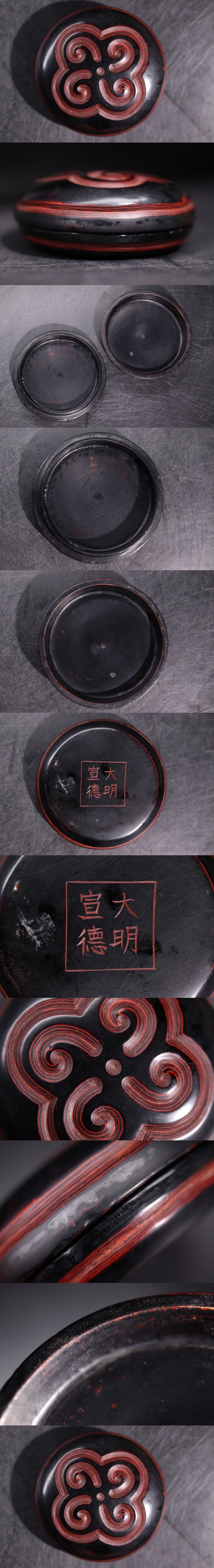 - 大明宣徳 底款 具利 香合 / 明 中国美術 漆芸 漆器 検索: 堆黒 堆朱 .G2763