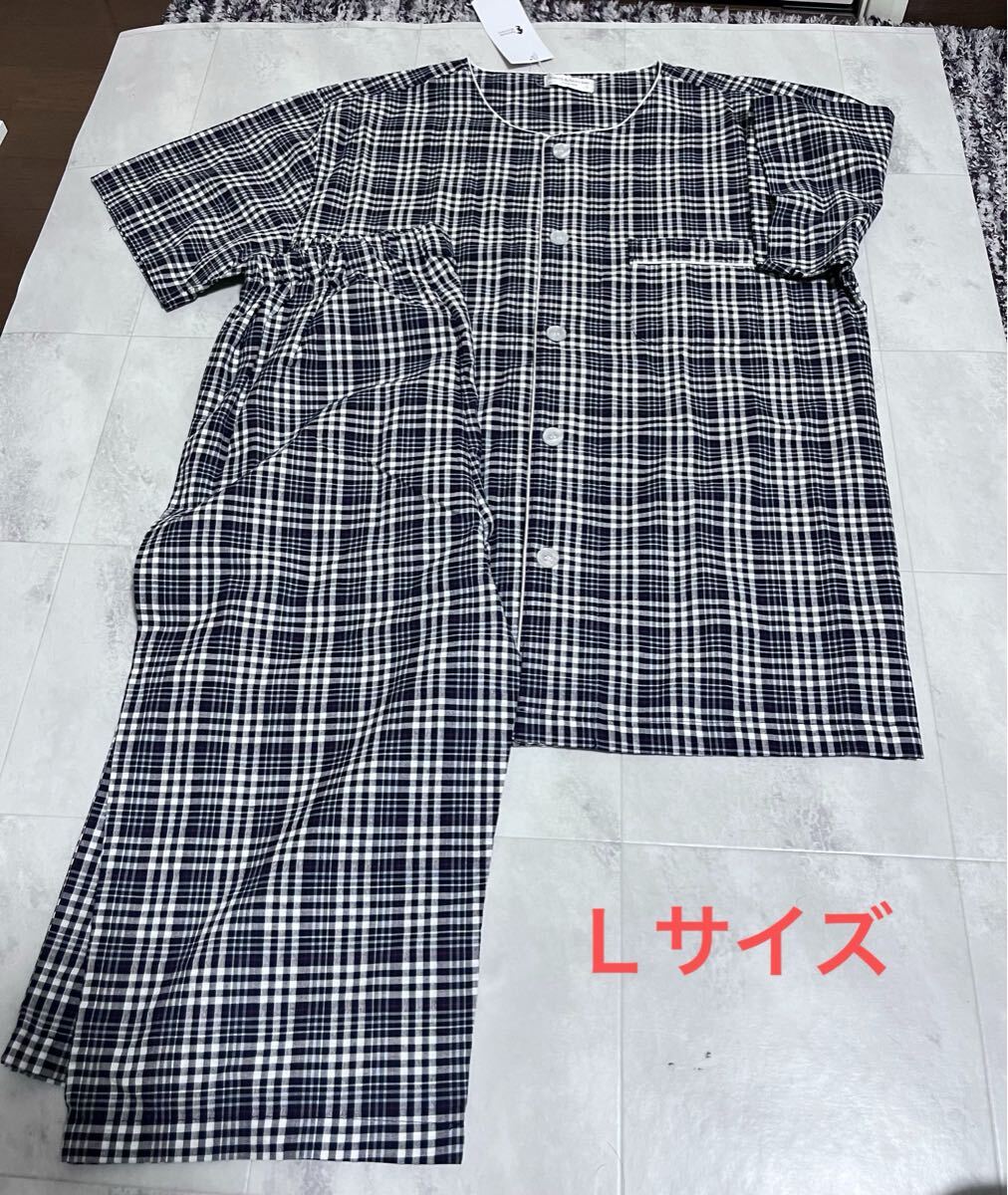 > 新品 SMITH & STRICER サッカー生地 紳士パジャマ(前開き) ネイビーチェック柄 上下セット 胸ポケット Lサイズ 前あき 入院介護②