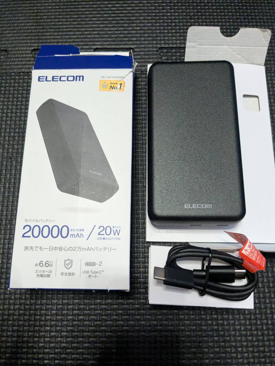 > ◎0710u0941 エレコム モバイルバッテリー 20000mAh 20W USB PD対応 2ポート Type-C ケーブル付属 ブラック DE-C52-20000BK