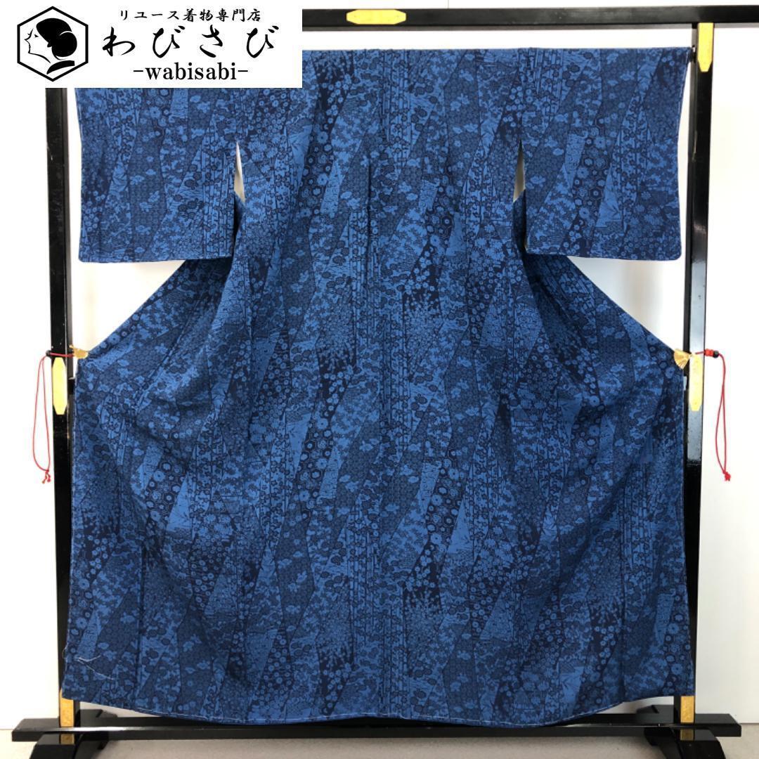 - 小紋 徳島県伝統技法工芸士 香川京美 藍染 型染 花模様 しつけ糸 K-5351