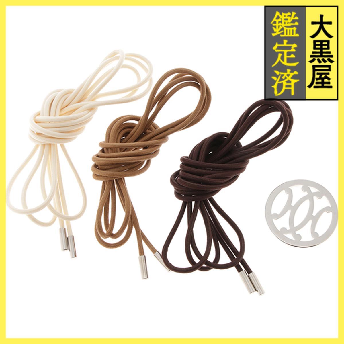 - HERMES エルメス ベルト キス コートベルト アイボリー/ブラウン/ダークブラウン/シルバー金具 コットン