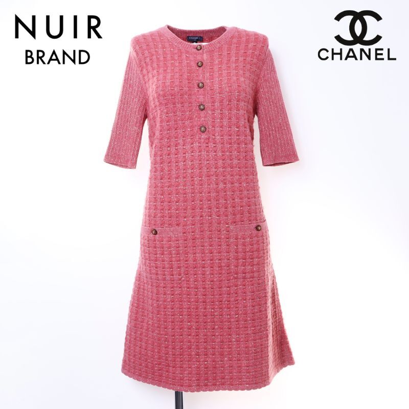 > 極美品 シャネル CHANEL Size:38 ラメ ニット 半袖 ライオン ワンピース ピンク WS6432