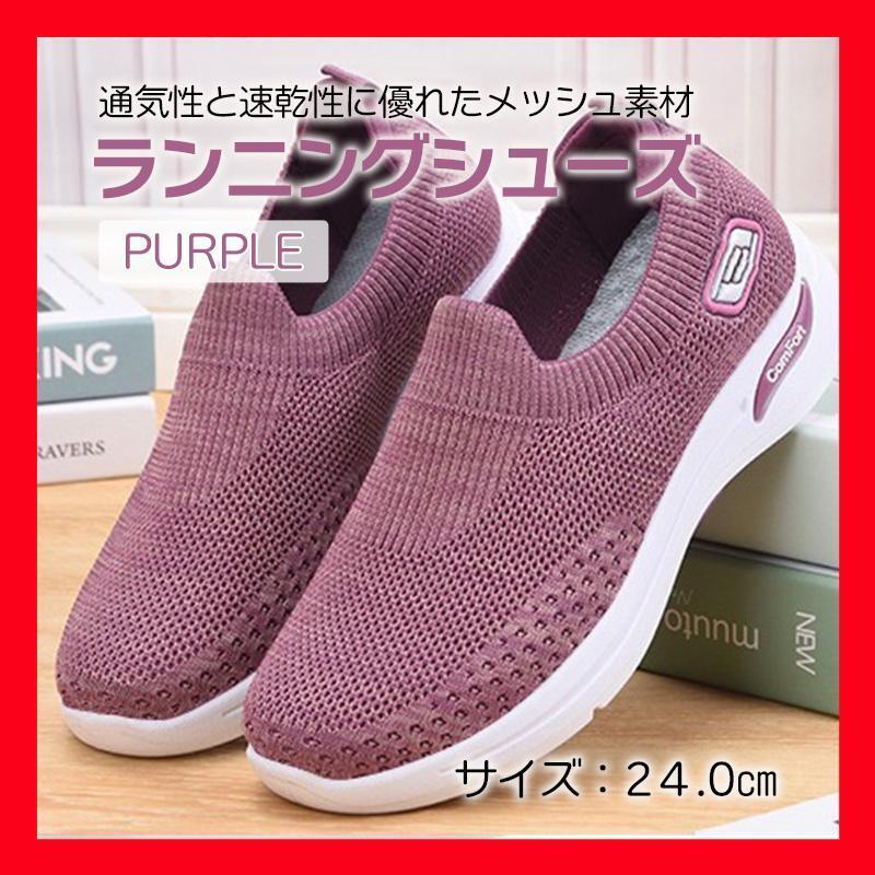 - 24.0cm スニーカー 紫 スリッポン 厚底 メッシュ 運動靴 パープル 介護
