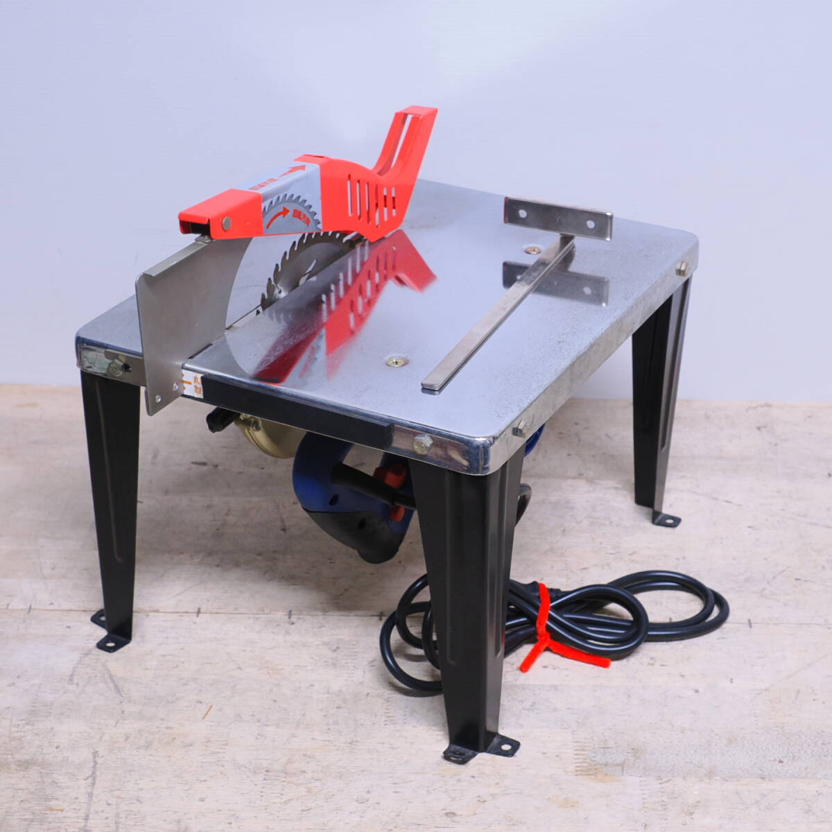 - e) 卓上スタンド付き 電動丸ノコ Trad TCS-147B 三共 スタンドはアースマン
