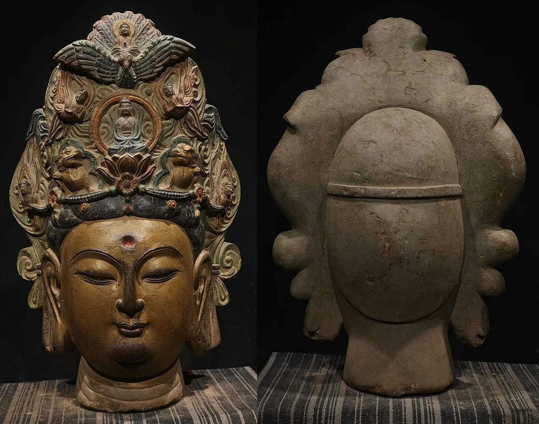- ◆羽彰・古美術◆Y436隋時代 青石観音頭 仏首 青石細工彫刻★仏教古美術★仏像★細密細工★廃寺旧蔵★廃寺買出品