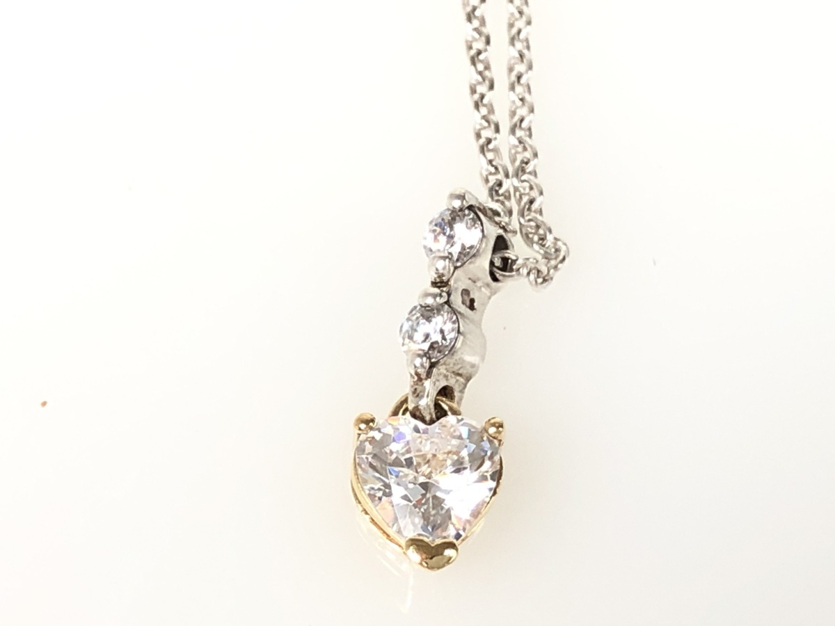 > 美品 スタージュエリー STAR JEWELRY ハート ネックレス シルバー925×K18×ラインストーン YAS-2648