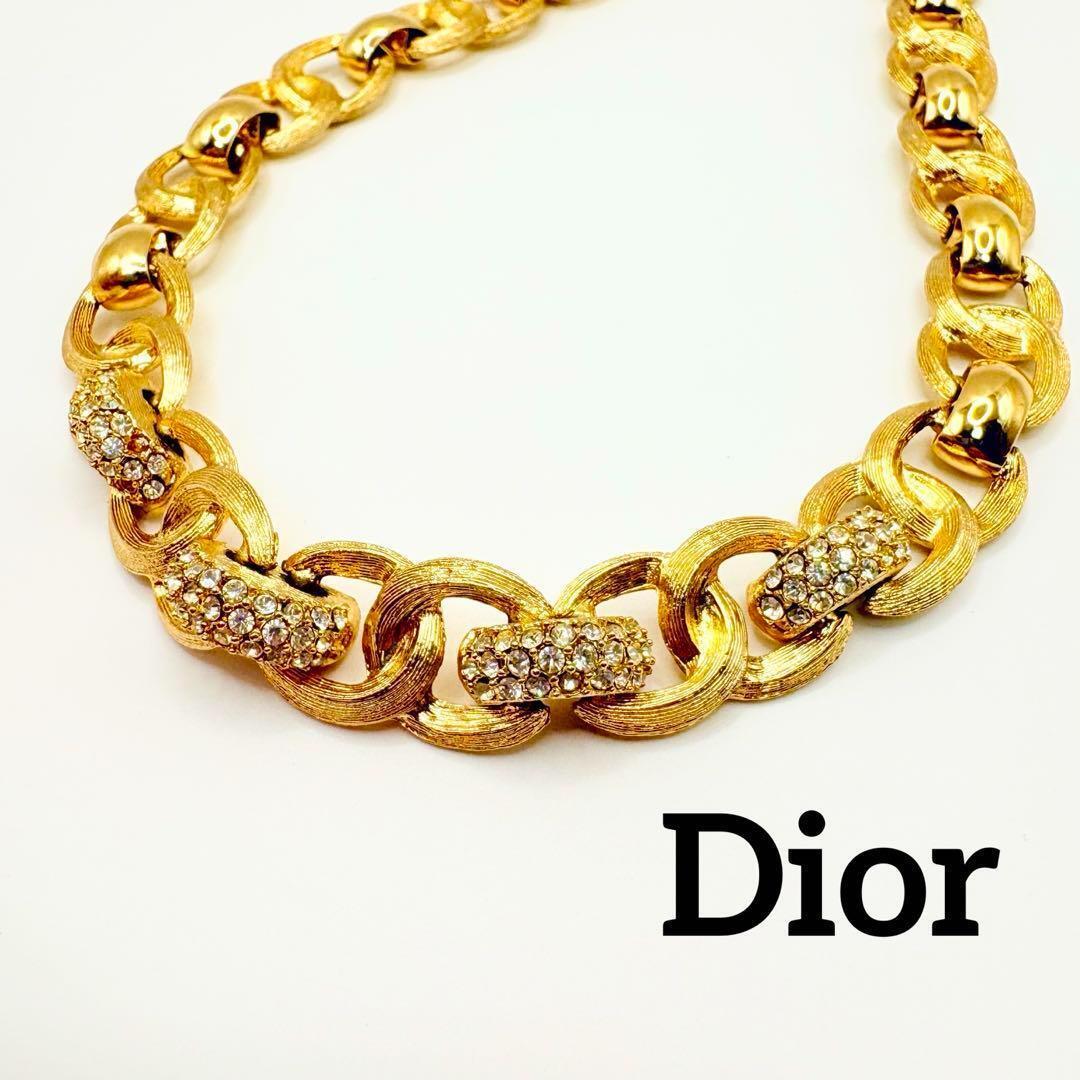 > Christian Dior クリスチャンディオール ネックレス ペンダント ゴールド ラインストーン 重厚感 大ぶり デザイン 金 希少 レア